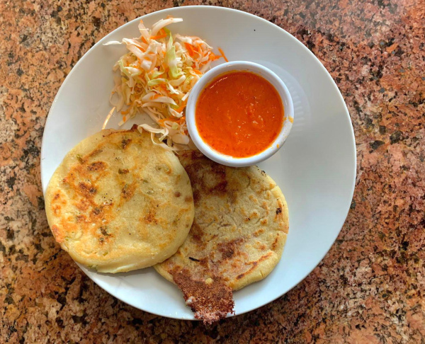 Stuffed tortilla choice of cheese, beans, cheese with loroco. Served with salsa and cabbage.